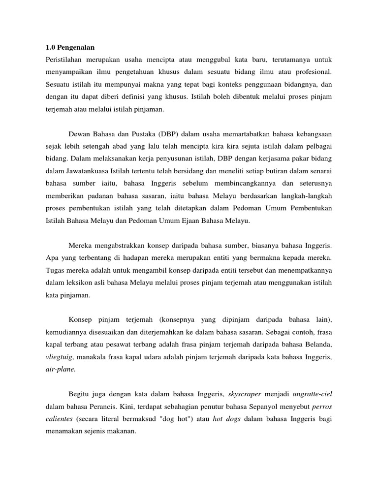 Peminjaman kata bukanlah perkara baru dalam kerja peristilahan. Satu prinsip yang digunakan dalam pengejaan istilah pinjaman ialah pengekalan bentuk ejaan kata asing. Pergi ke navigasi Pergi ke carian.
